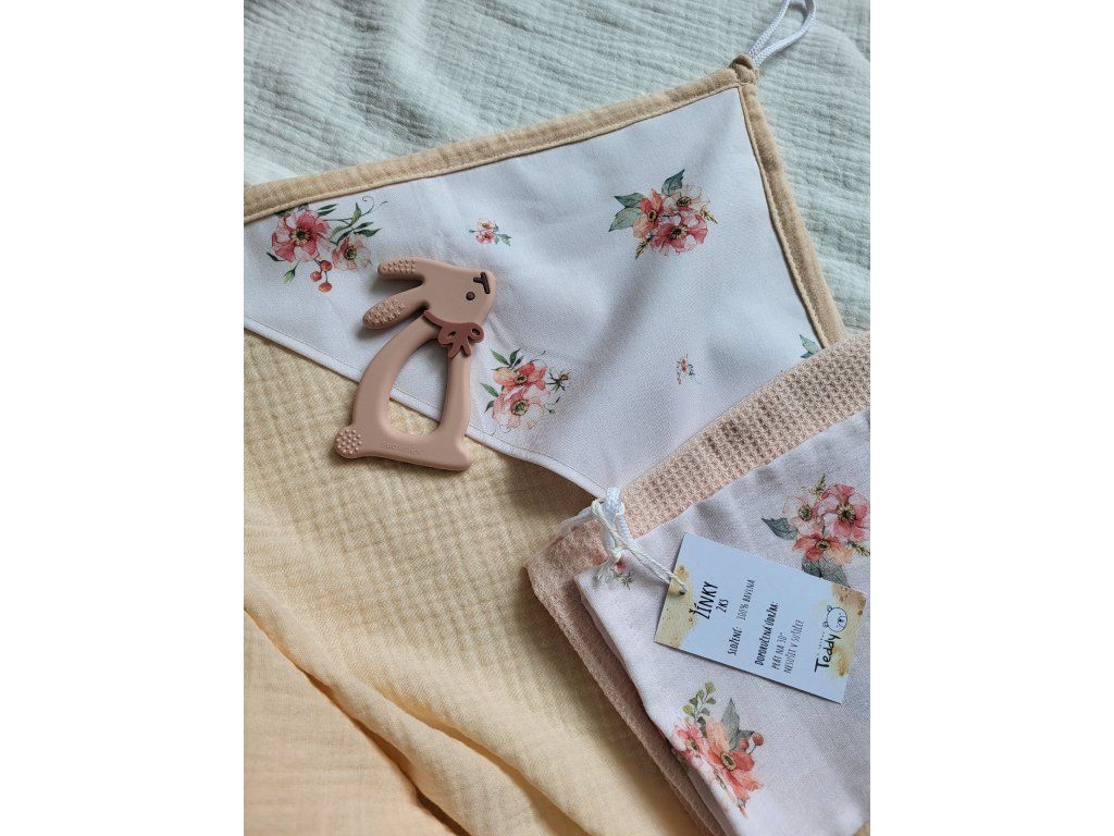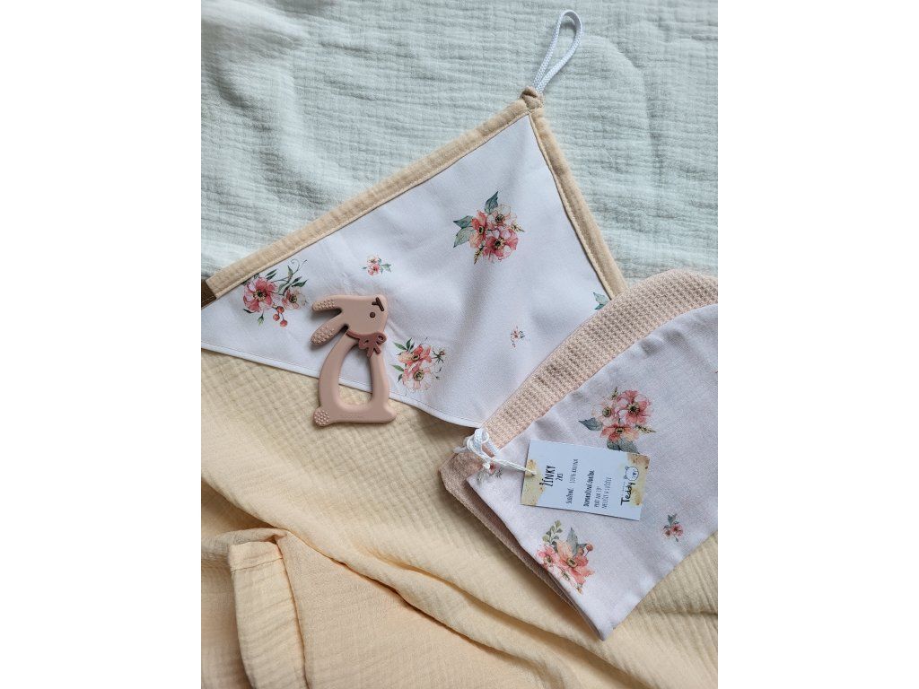 Mušelínová osuška i žínky jsou hebké, prodyšné a maximálně šetrné k citlivé pokožce miminka, takže skvěle doplní každou výbavičku pro novorozence. Kousátko pomáhá ulevit při prořezávání prvních zoubků a dělá z této sady nejen krásný, ale i praktický dárek pro miminko.