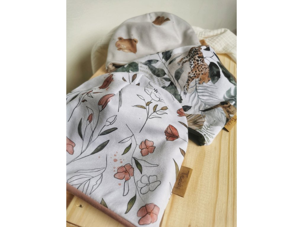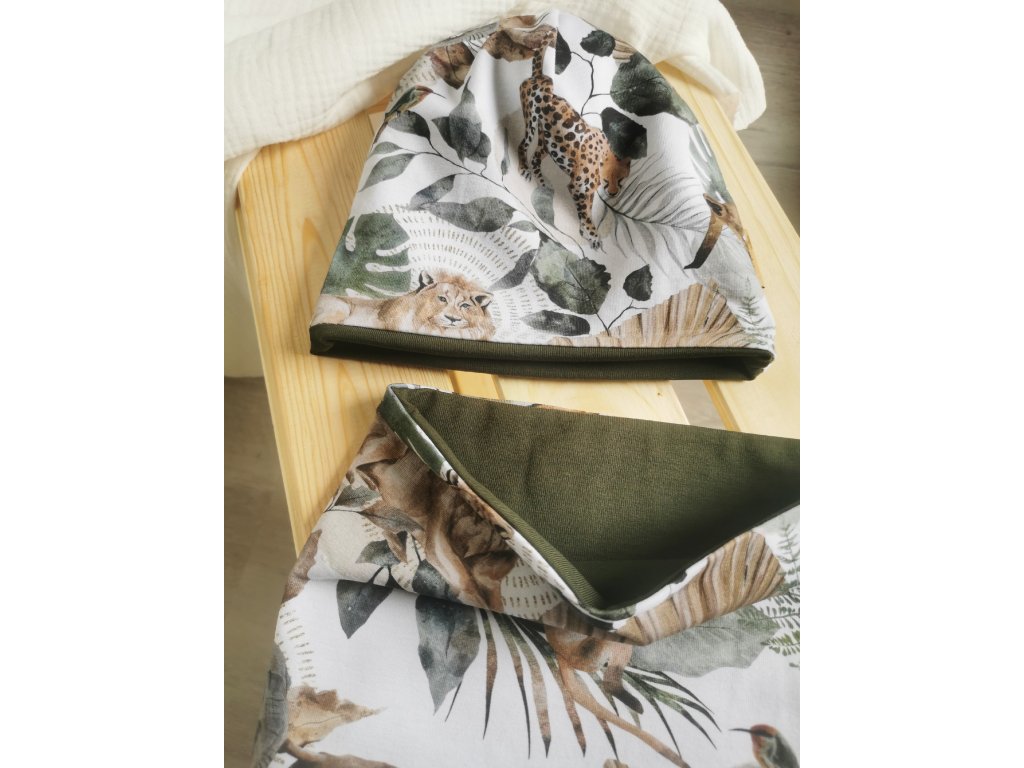 Vzor Jungle přináší svět zvířat v hravém a přátelském provedení. Motiv působí energicky, zaujme na první pohled a krásně doplní dětské jarní či podzimní outfity. Každý kus je díky autorskému tisku originální.