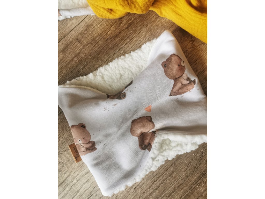 Vzor Teddy tvoří milé motivy medvídků v jemném, hravém provedení. Působí mazlivě a přátelsky, díky čemuž set krásně vynikne v zimním oblečení. Autorský tisk zaručuje, že každý kus je originální.