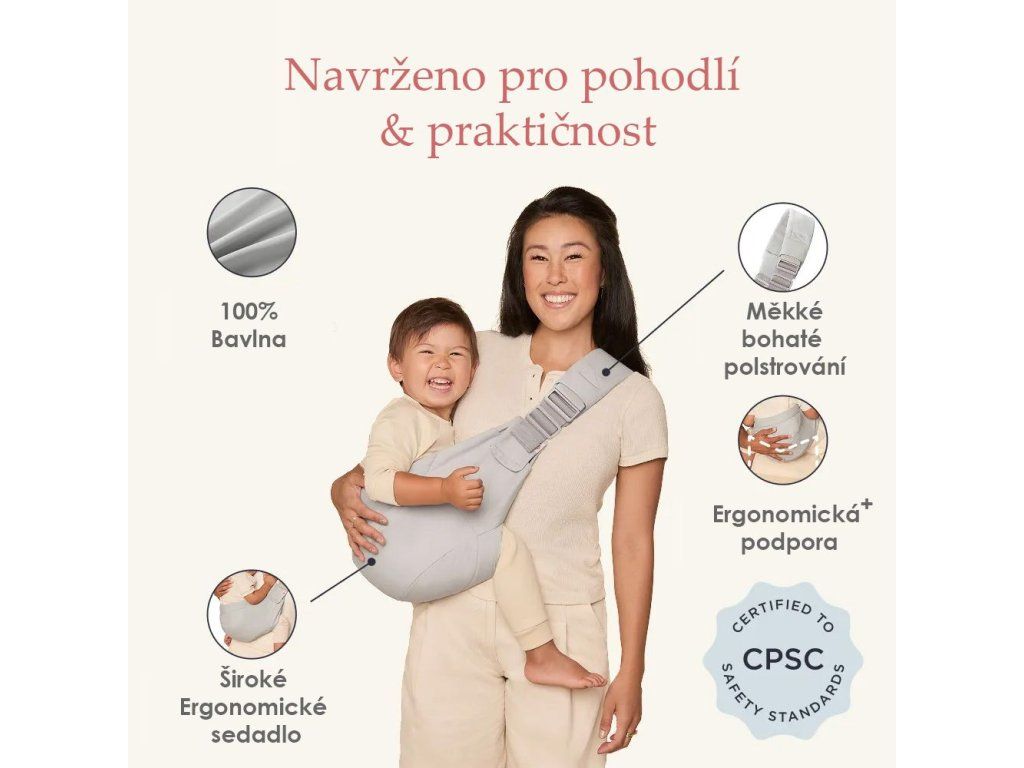 Podpořeno zárukou ErgoPromise od Ergobaby - pokud objevíte výrobní nebo materiálovou vadu, Ergobaby vám nosítko zdarma vymění.