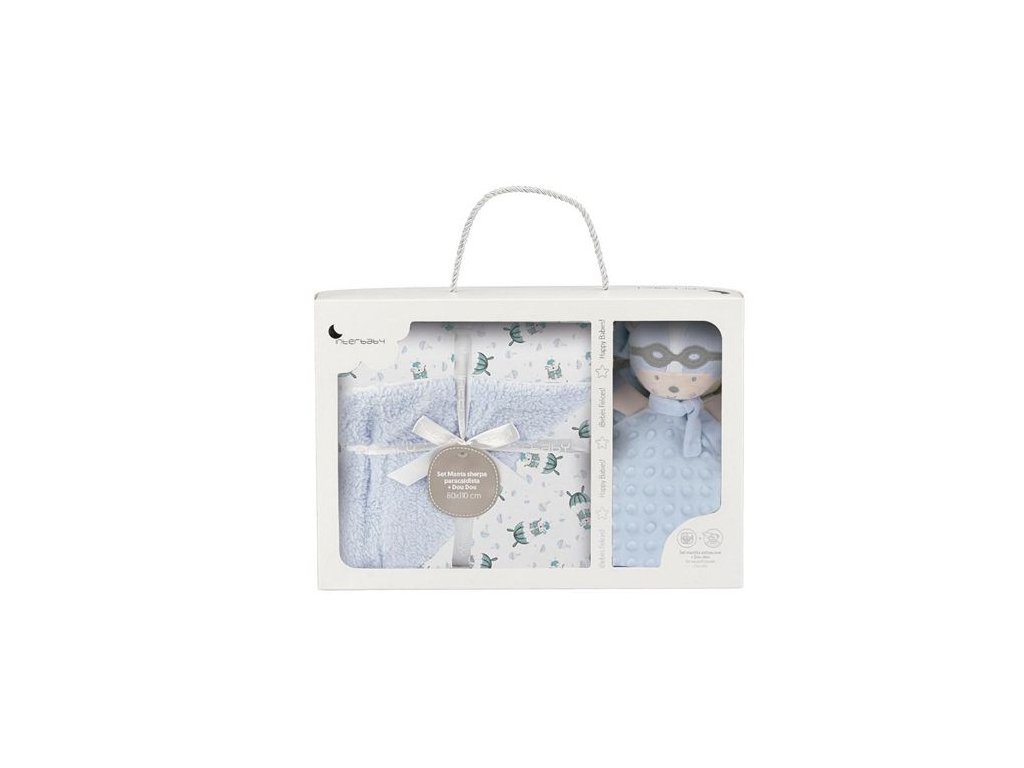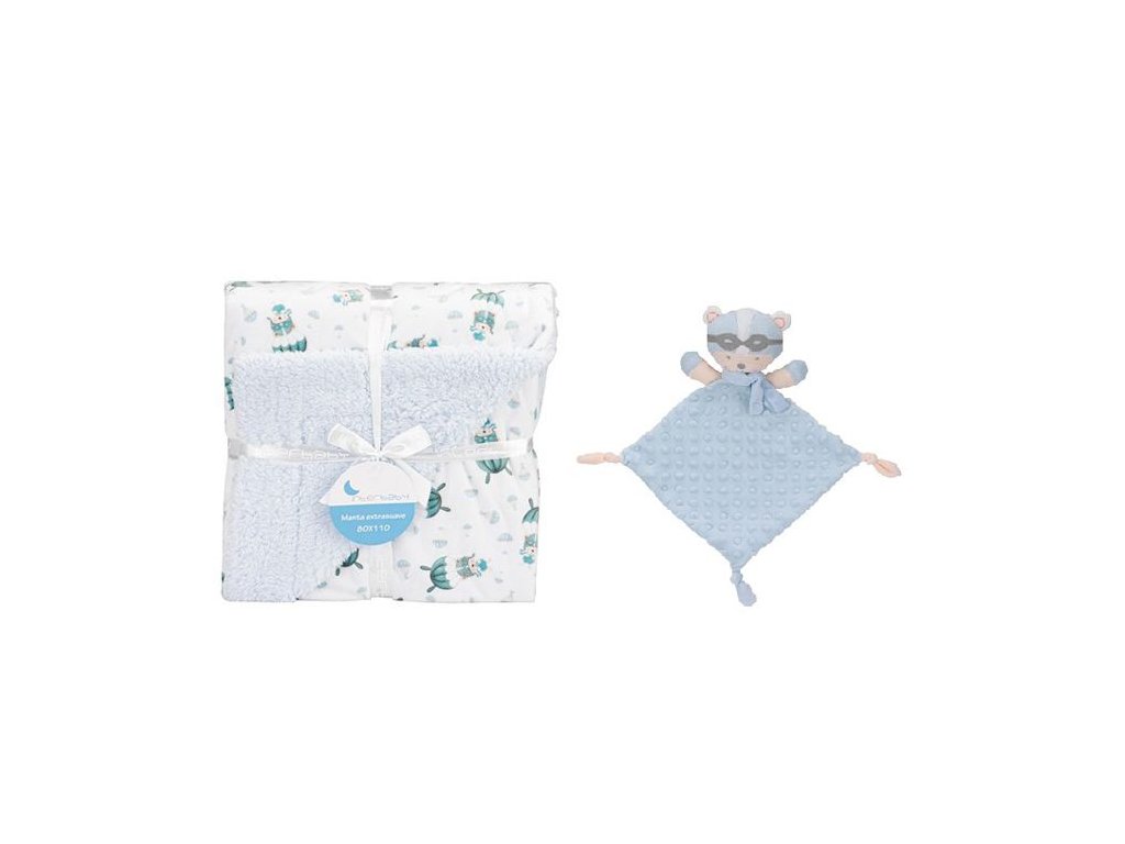 Nádherný dárek balený v dárkové krabičce s přítulkou, vhodný pro narozená miminka i větší děti do tří let, které si velikost deky užijí. Deka je jemná k dětské pokožce.