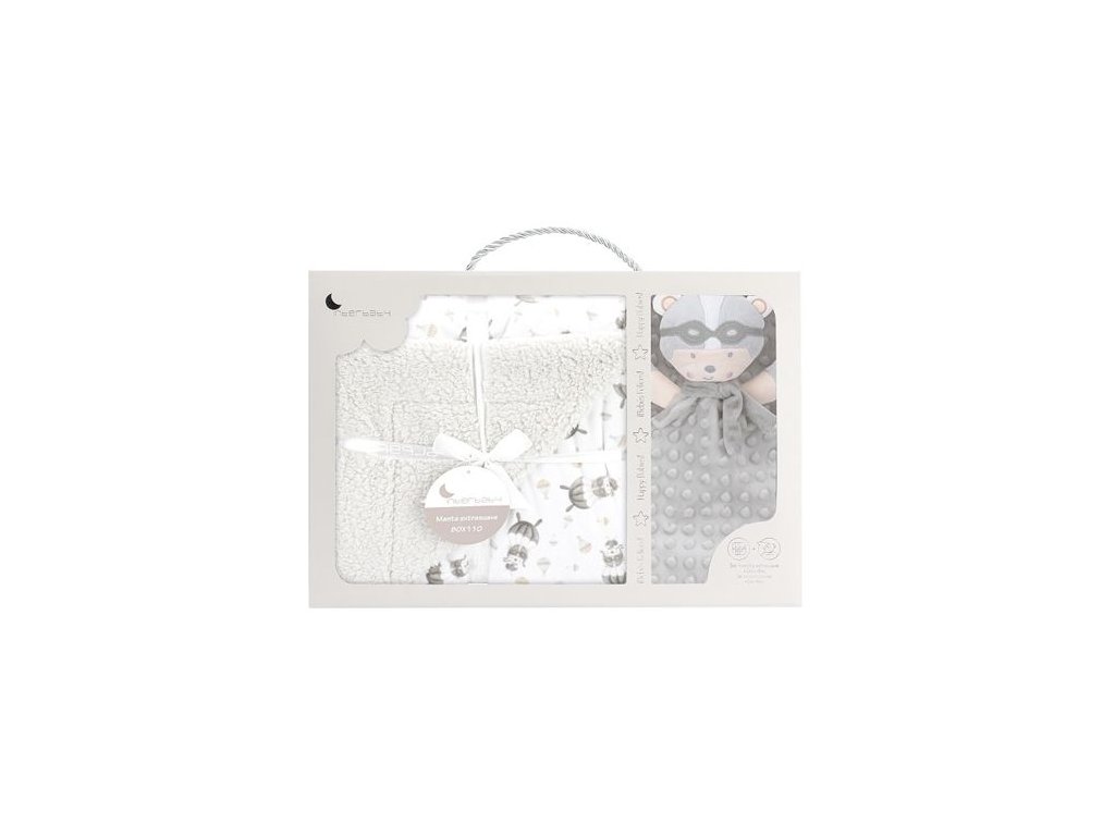 Nádherný dárek balený v dárkové krabičce s přítulkou, vhodný pro narozená miminka i větší děti do tří let, které si velikost deky užijí. Deka je jemná k dětské pokožce.