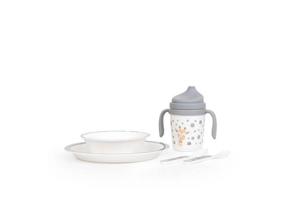 INTERBABY | Jídelní set ZVÍŘÁTKA +6M - šedý