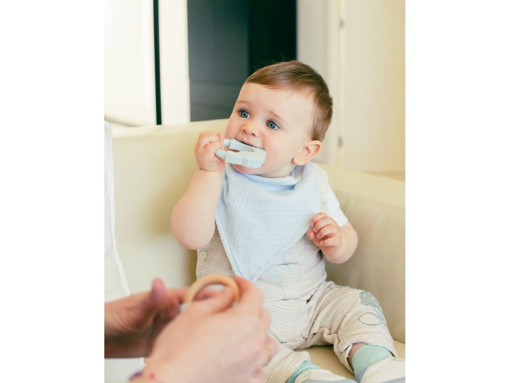 Silikonové kousátko s drobnými výstupky pro úlevu pro dětské dásně. Evoluční kousátka jsou bezpečná, ergonomická, lehká a velmi zábavná.
