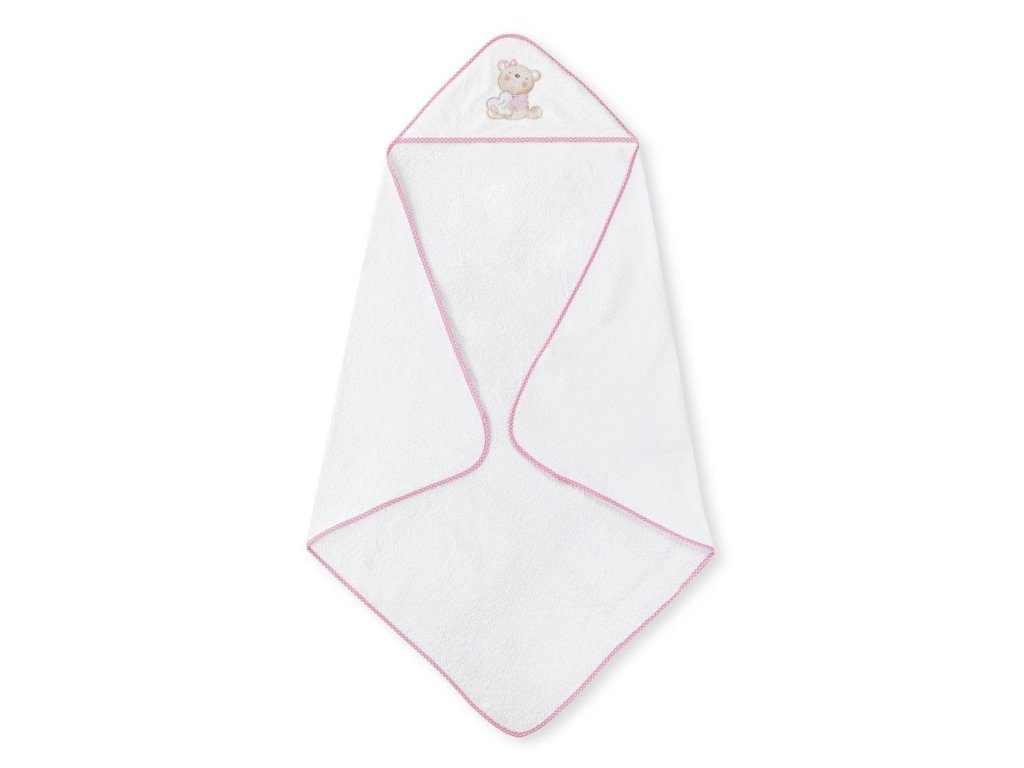 INTERBABY | Osuška froté MEDVÍDEK LOVE + hřeben - BÍLO-RŮŽOVÁ