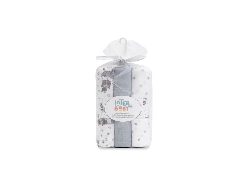 INTERBABY | PLENKA padák 3 kusy 80x80 cm- bílo/šedá