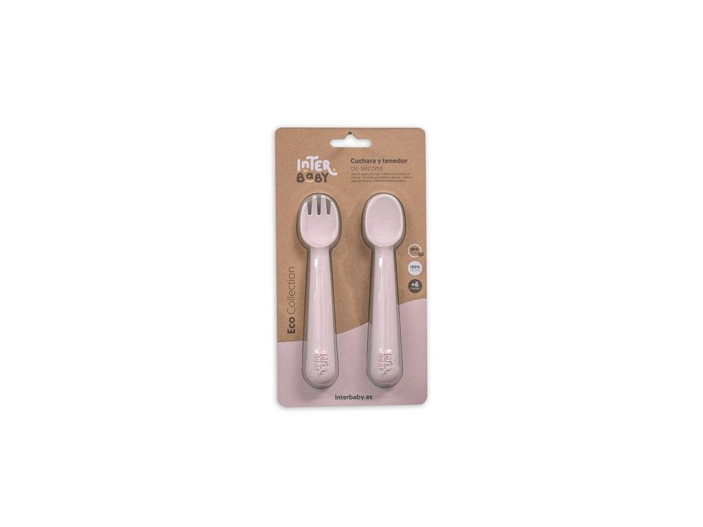 INTERBABY | SET silikonová LŽIČKA + VIDLIČKA - růžový