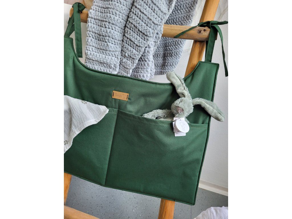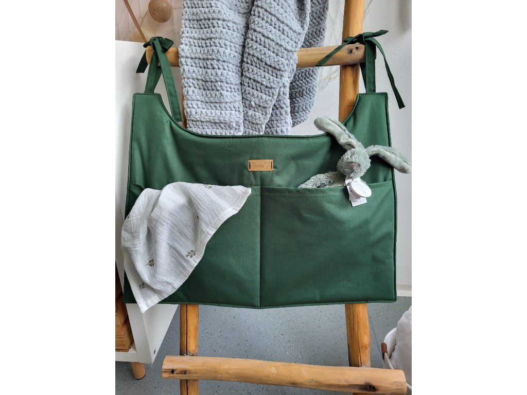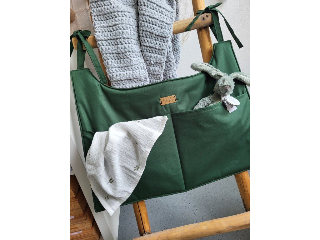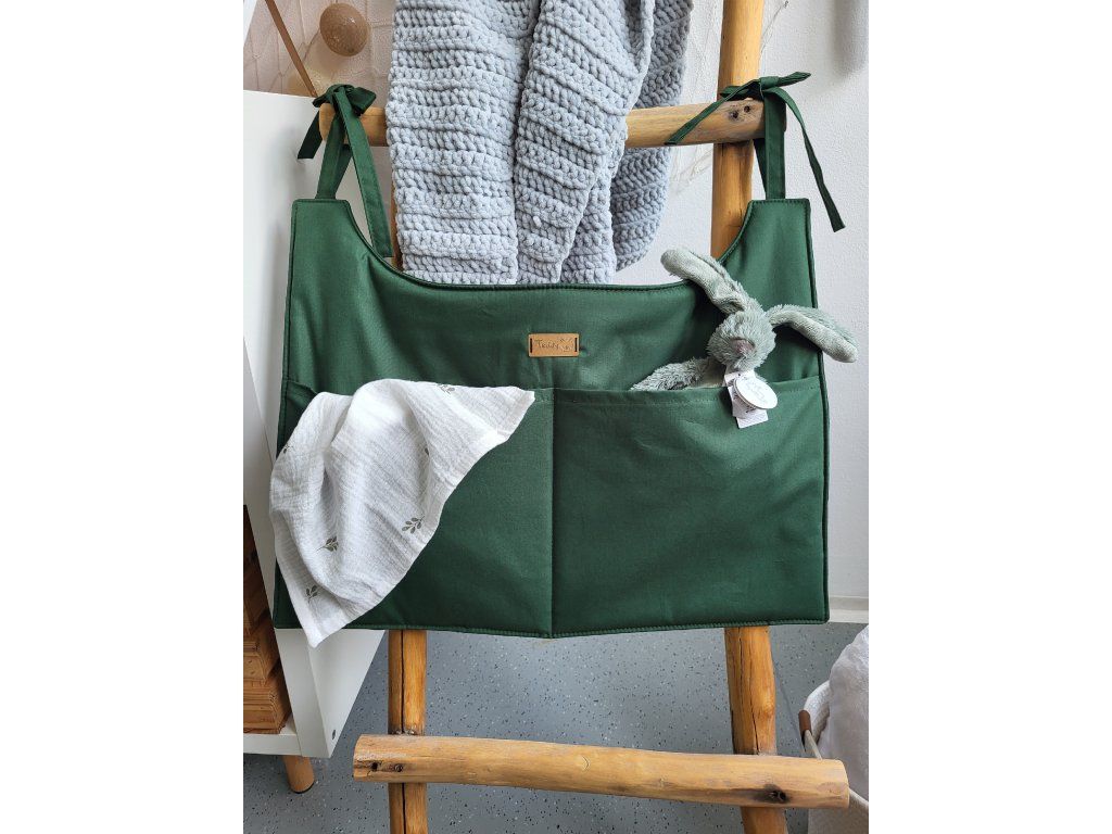 Kapsář na postýlku v zelené barvě je ideálním pomocníkem pro udržení pořádku kolem miminka. Díky dvěma prostorným kapsám budete mít u postýlky přehledně uložené všechny potřebné drobnosti – dudlíky, pleny, hračky nebo lahvičky – a budete je mít vždy po ruce.
