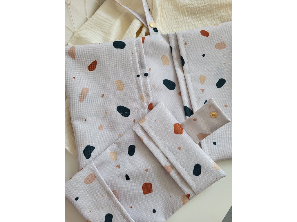 Oba produkty jsou vyrobeny z kvalitní kočárkoviny, která je odolná, snadno omyvatelná a chrání obsah před nečistotami. Díky promyšlenému designu je sada nejen praktická, ale i estetická.