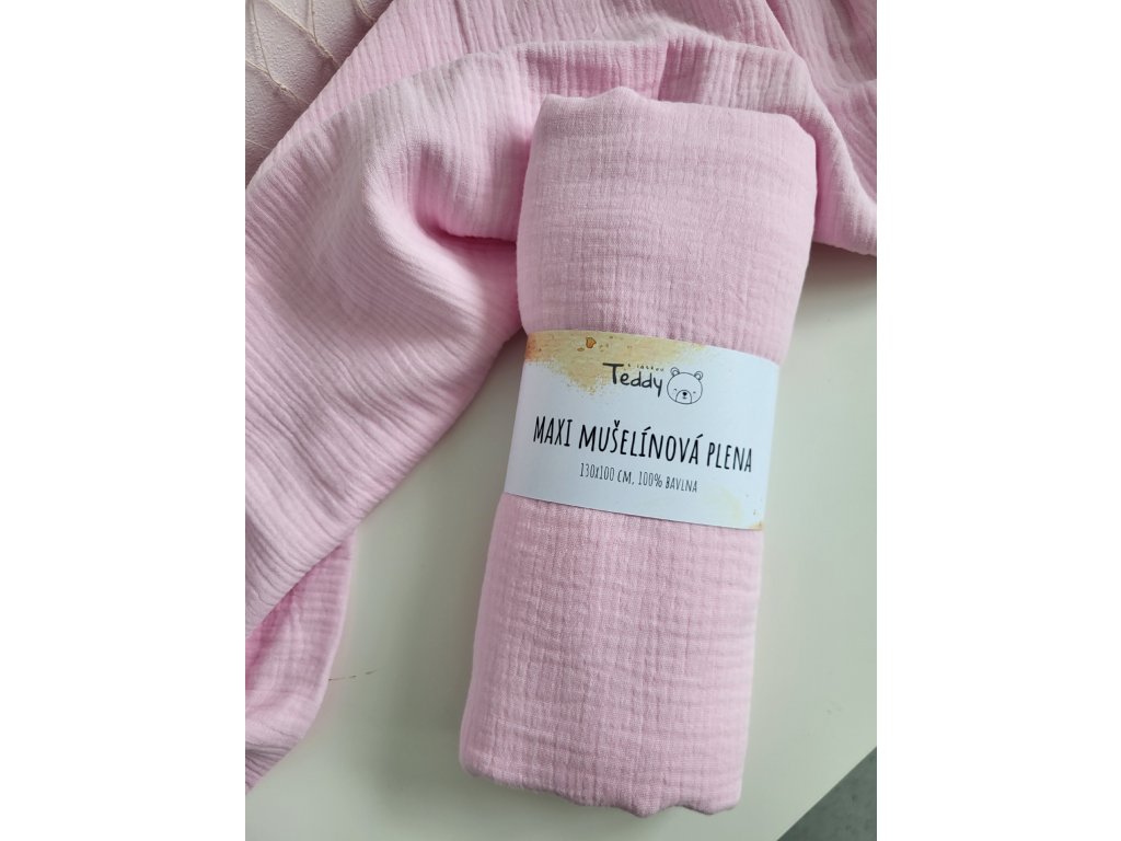 Mušelínová plenka MAXI 130 × 100 cm - světlá růžová