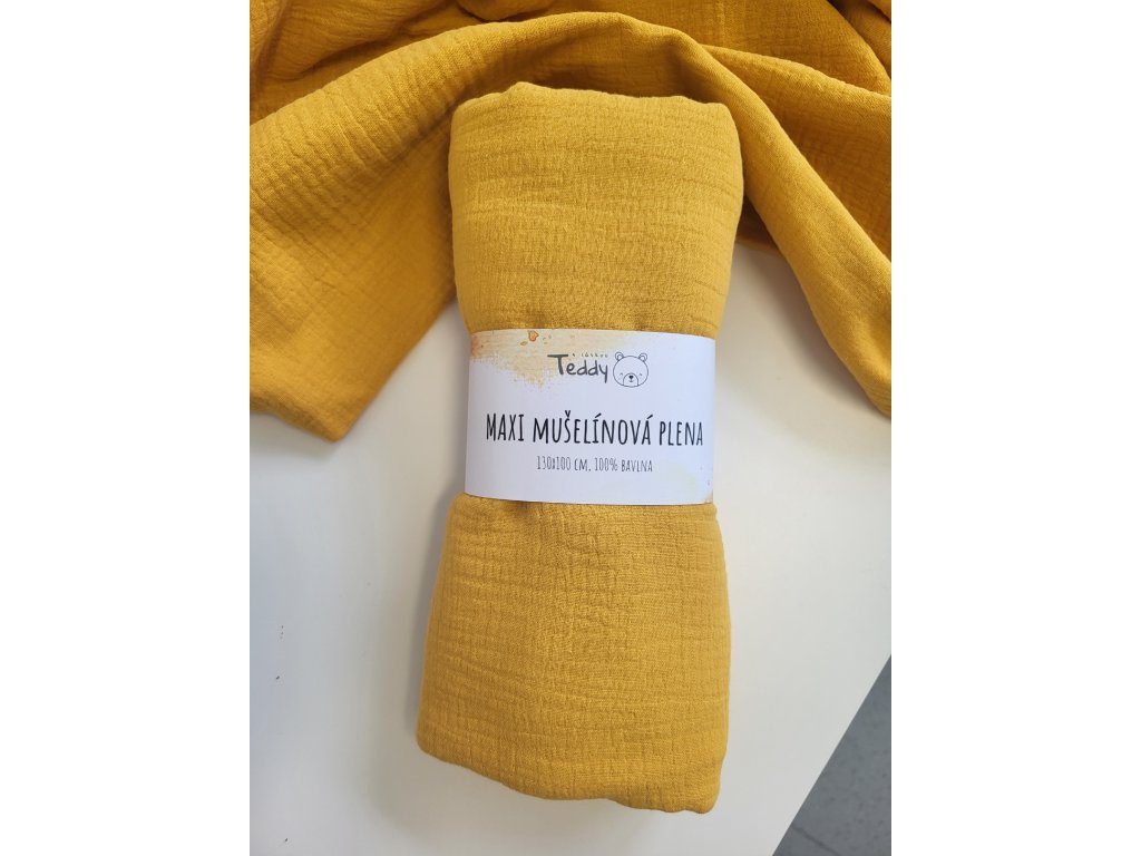 Mušelínová plenka MAXI 130 × 100 cm - tmavě žlutá