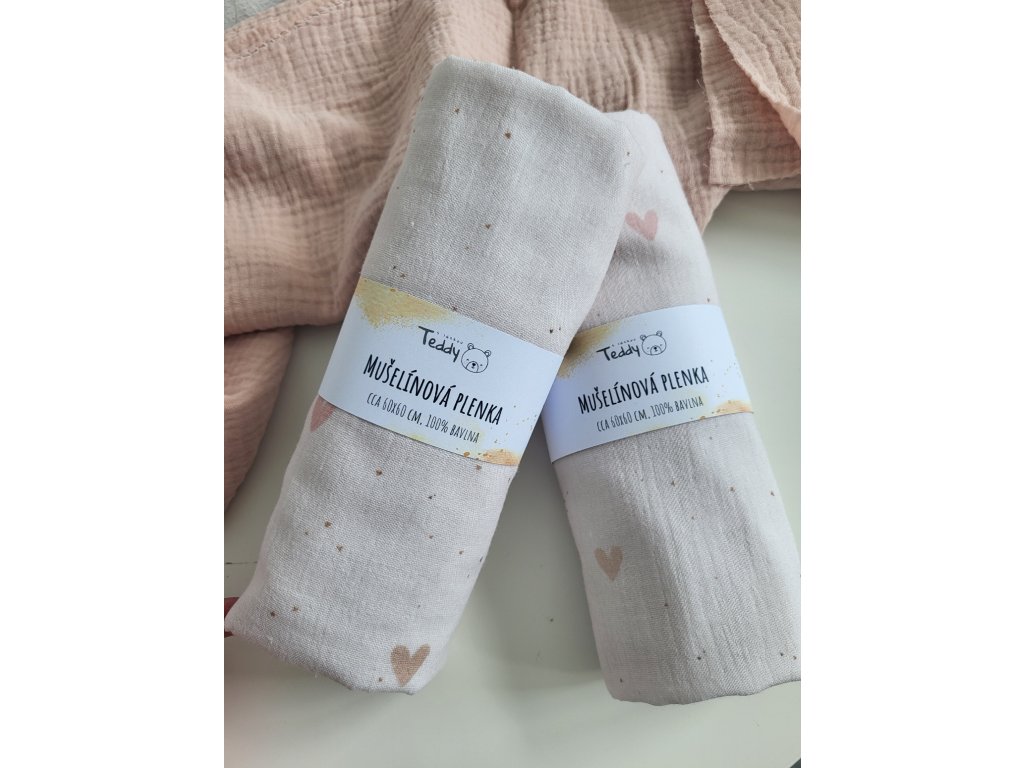 Mušelínová plenka STANDARD 60 x 60 cm - srdce