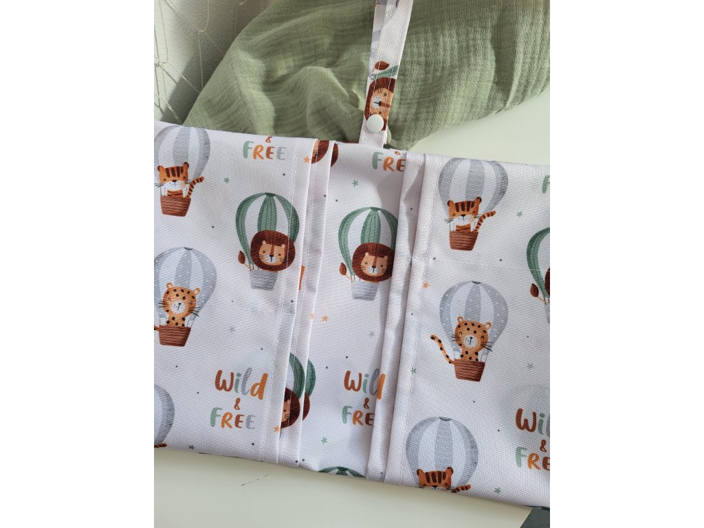 Díky praktickému poutku na druk můžete plenkovník snadno připevnit na kočárek, batoh nebo háček – ideální na cesty i každodenní použití.