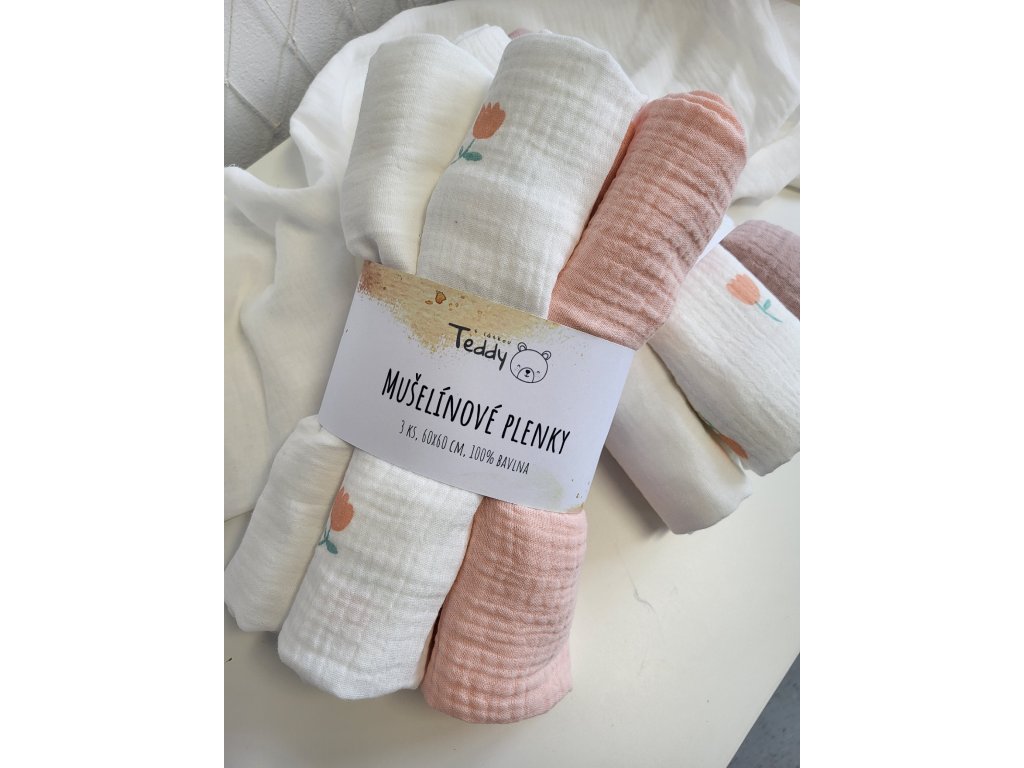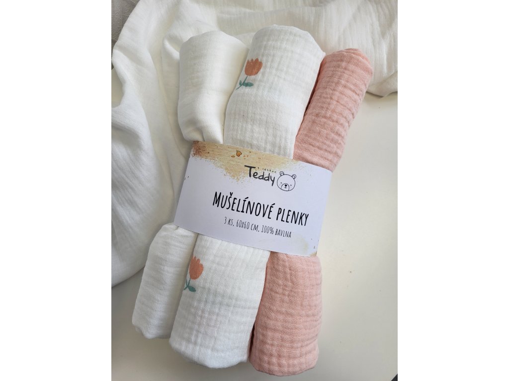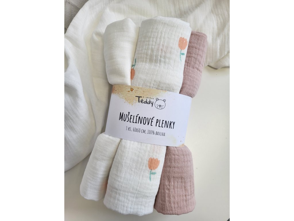 Sada 3x mušelínová plenka STANDARD 60 x 60 cm - tulipánek