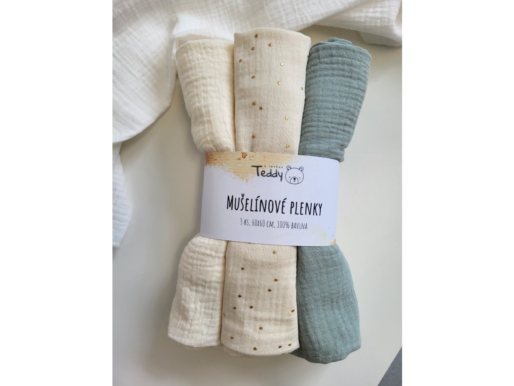 sada 3 kusů mušelínových plenek o velikosti 60x60 cm