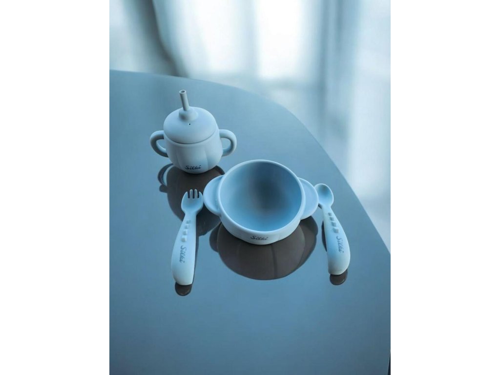 Modrá sada silikonového dětského nádobí je ideálním pomocníkem při prvním samostatném stolování. Vyrobena z kvalitního, měkkého potravinářského silikonu, který je bez BPA, PVC a ftalátů, takže je naprosto bezpečná pro malé děti.