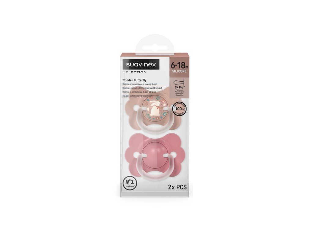SUAVINEX | Dudlík SX PRO fyziologický 2 ks BUTTERFLY WONDERLAND NEW 6/18m - růžový králík + růžový