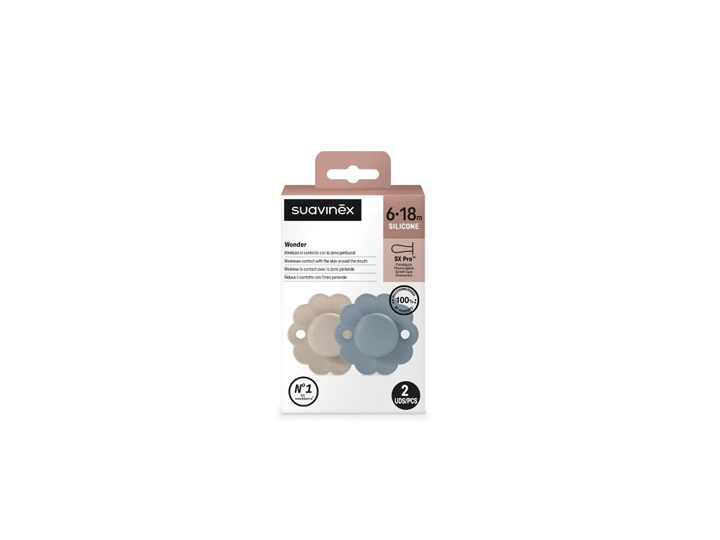 SUAVINEX | Dudlík SX PRO fyziologický 2 KS WONDER 6/18m - Gray Clouds + Spring Lake