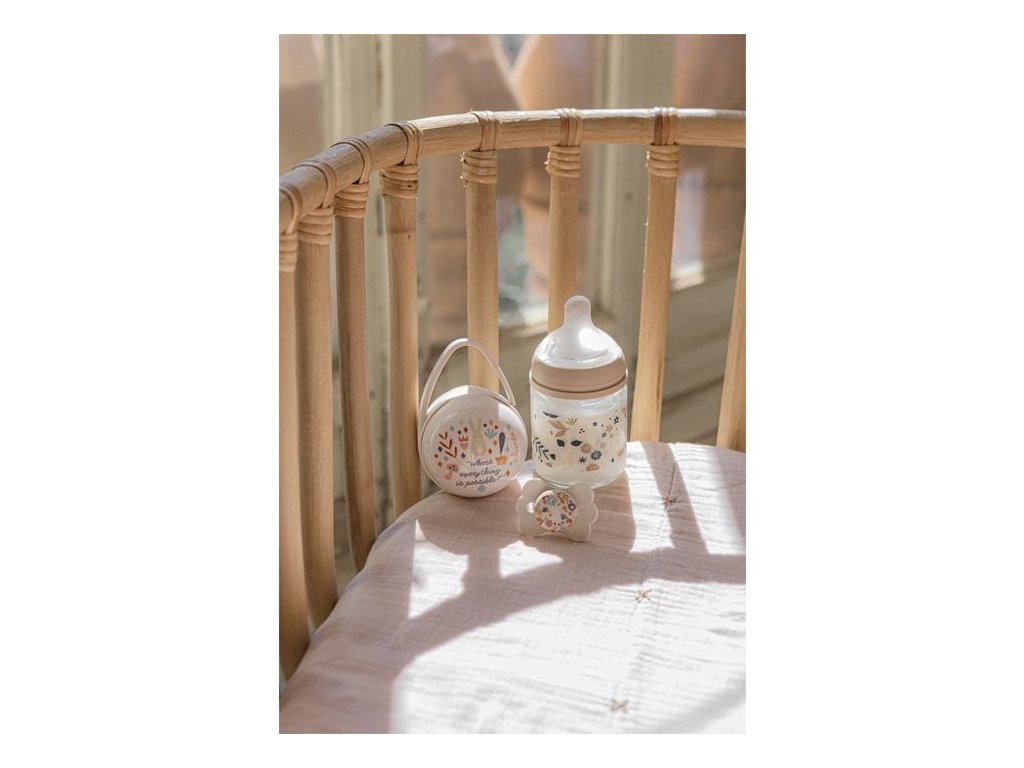 Pomáhá předcházet podráždění v peribukální oblasti, kde je pokožka v ranné fázi růstu dítěte zvláště citlivá právě pro nadměrné slinění. Dudlík bez kroužku poskytuje nezávislost Vašemu miminku, aby si jej děti mohly samy vkládat/vyndávat.