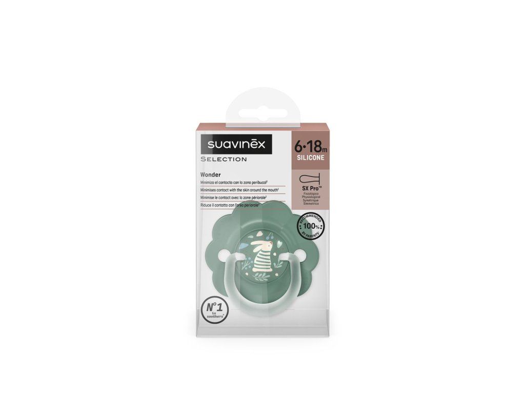 SUAVINEX | Dudlík SX PRO fyziologický WONDERLAND NEW 6/18m - zelený králík