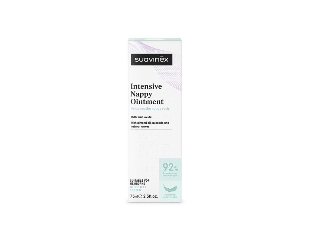 Napomáhá zklidnění podrážděné pleti v důsledku používání plen. Intenzivní pomáda pod plenky Suavinex napomáhá v obnovování funkce pleti v oblasti použití plenky, čímž ji udržuje chráněnou, hydratovanou a zklidněnou. Složení pomády, obohacené o oxid zinečnatý, vytváří ochranný film schopný izolovat pleť před vlivy vlhkosti a tímto předcházet podráždění způsobenému močí a stolicí. Zvláčňující vlastnosti kombinace rostlinných olejů a vosků přírodního původu pak vyživují a zklidňují pleť.