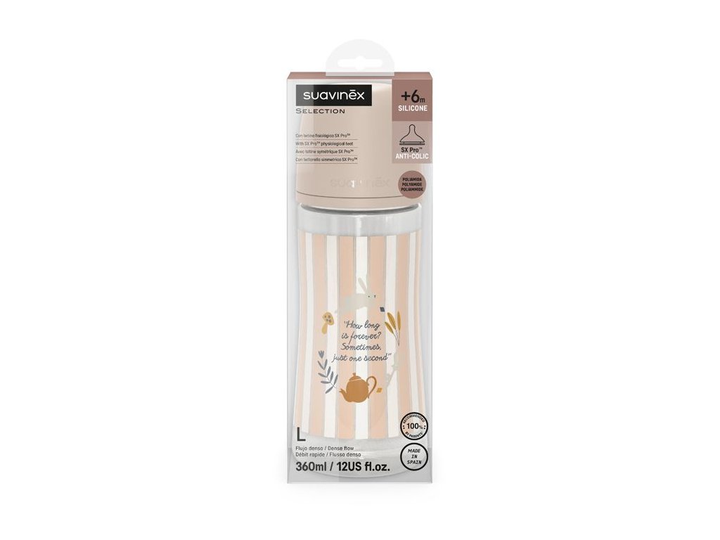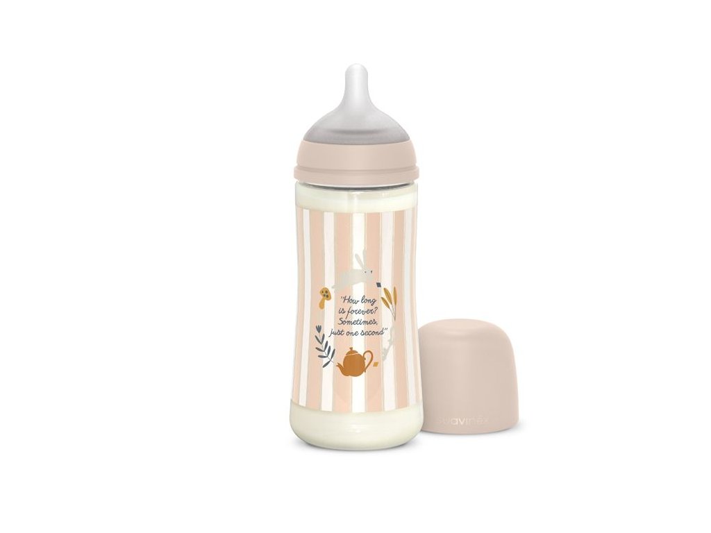 SUAVINEX | Kojenecká láhev WONDERLAND 360ml FYZIOL PRŮTOK L - RŮŽOVÁ