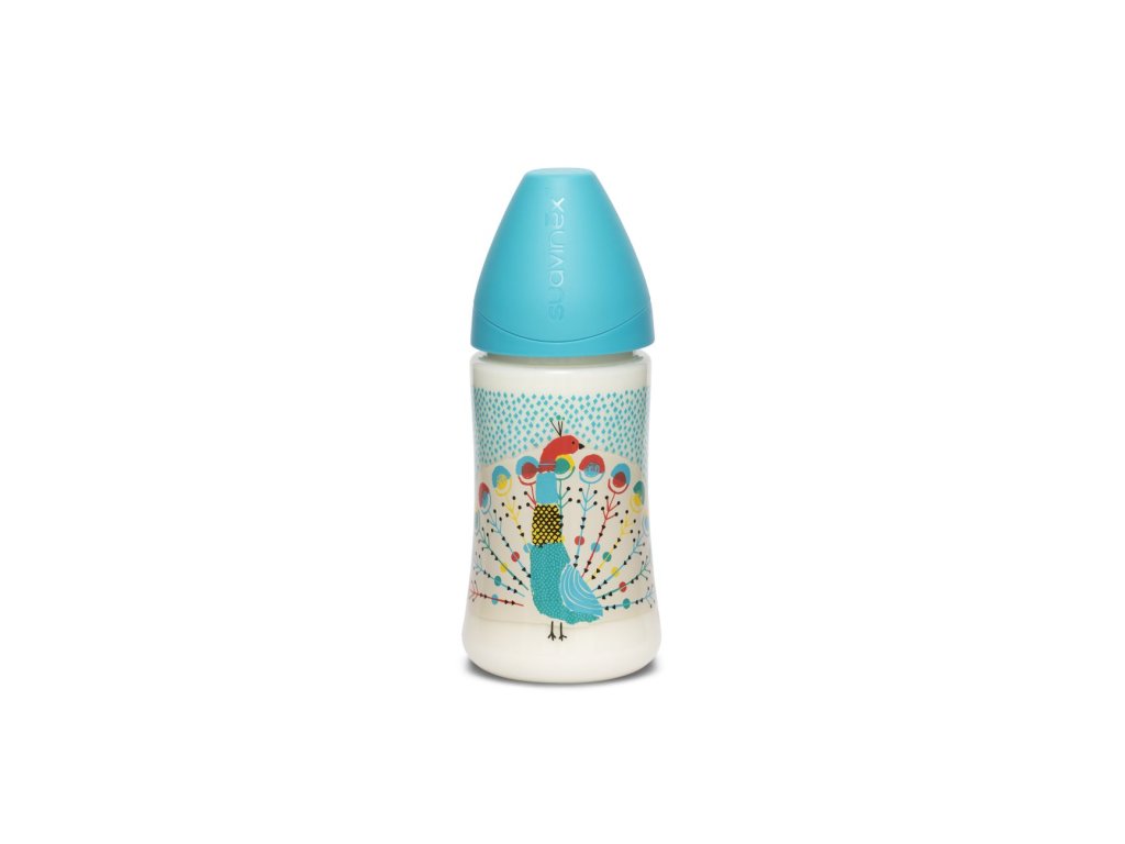 SUAVINEX | LÁHEV Kulatá savička LATEX 270 ml - MODRÝ PÁV