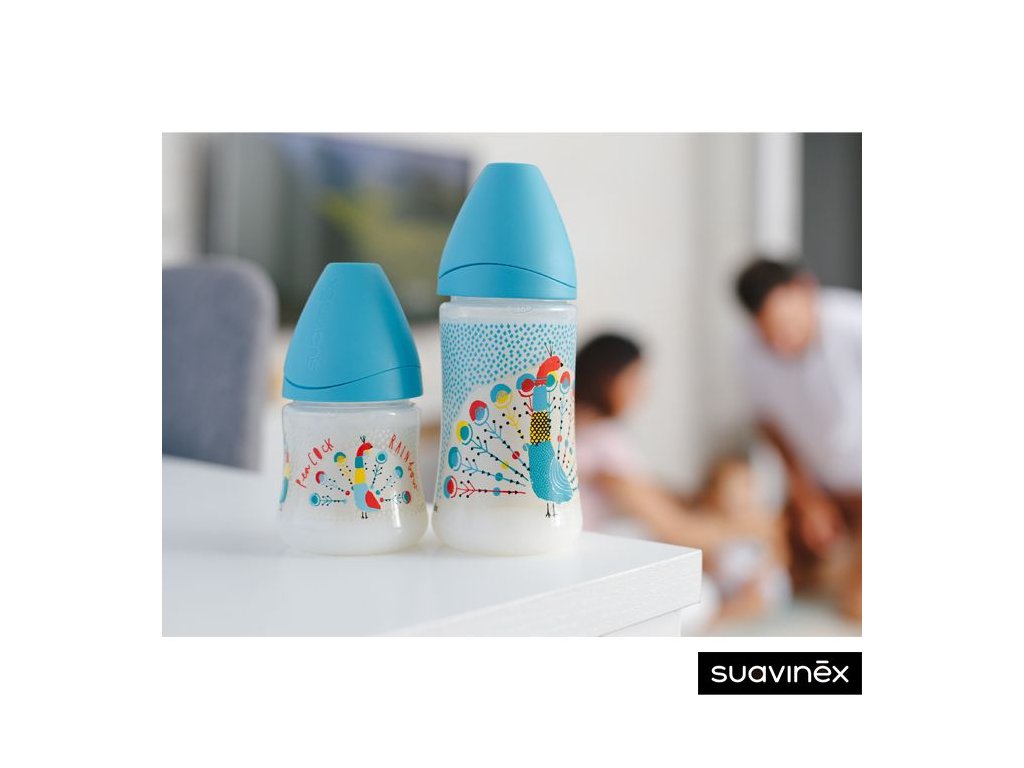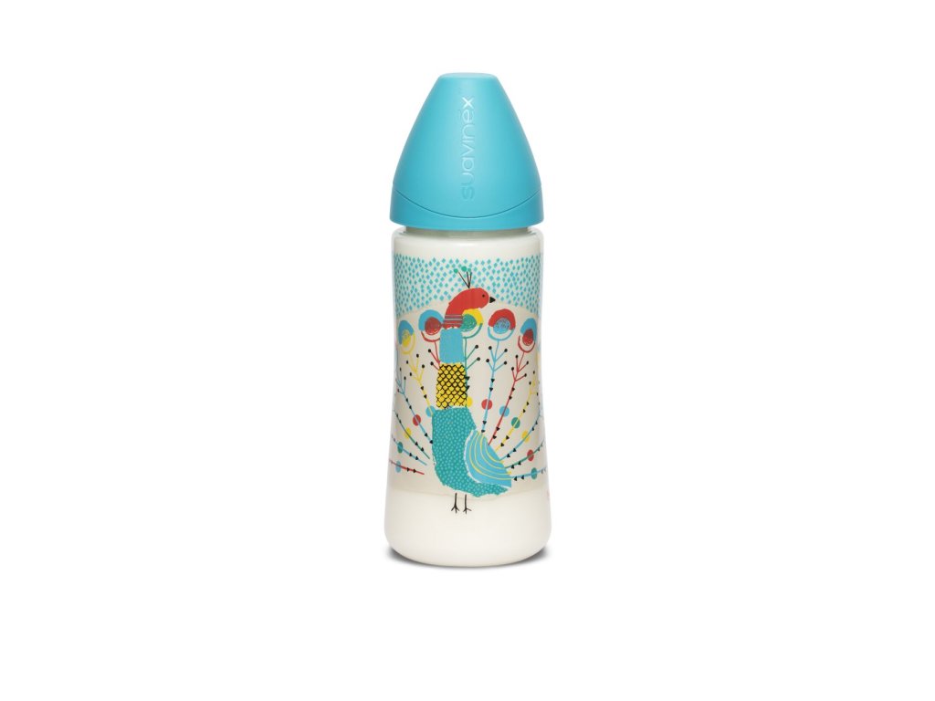 SUAVINEX | LÁHEV Kulatá savička SILIKON 360 ml - MODRÝ PÁV