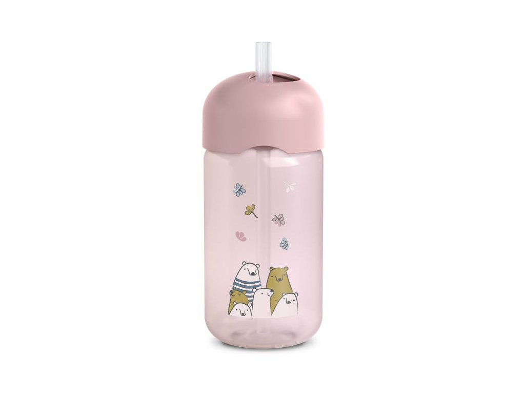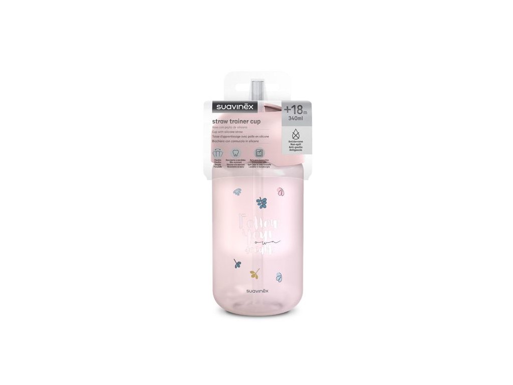 SUAVINEX | Lahvička s brčkem BEAR 340 ml - RŮŽOVÁ