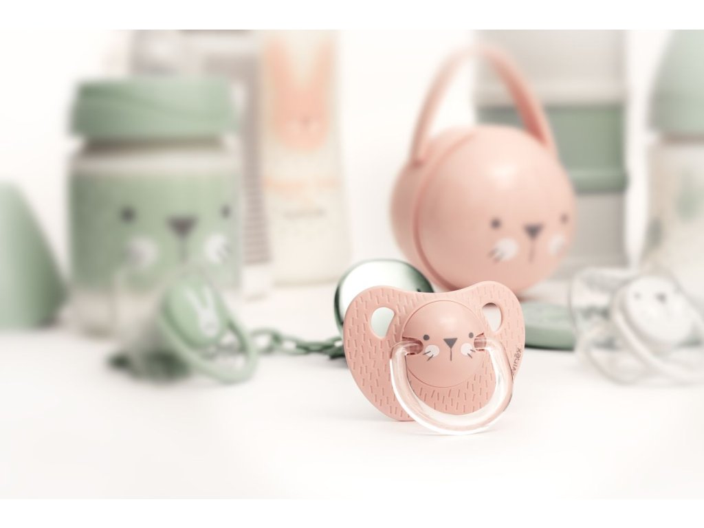 SUAVINEX | PREMIUM Dudlík anatomický HYGGE 6-18 m VOUSKY - RŮŽOVÁ