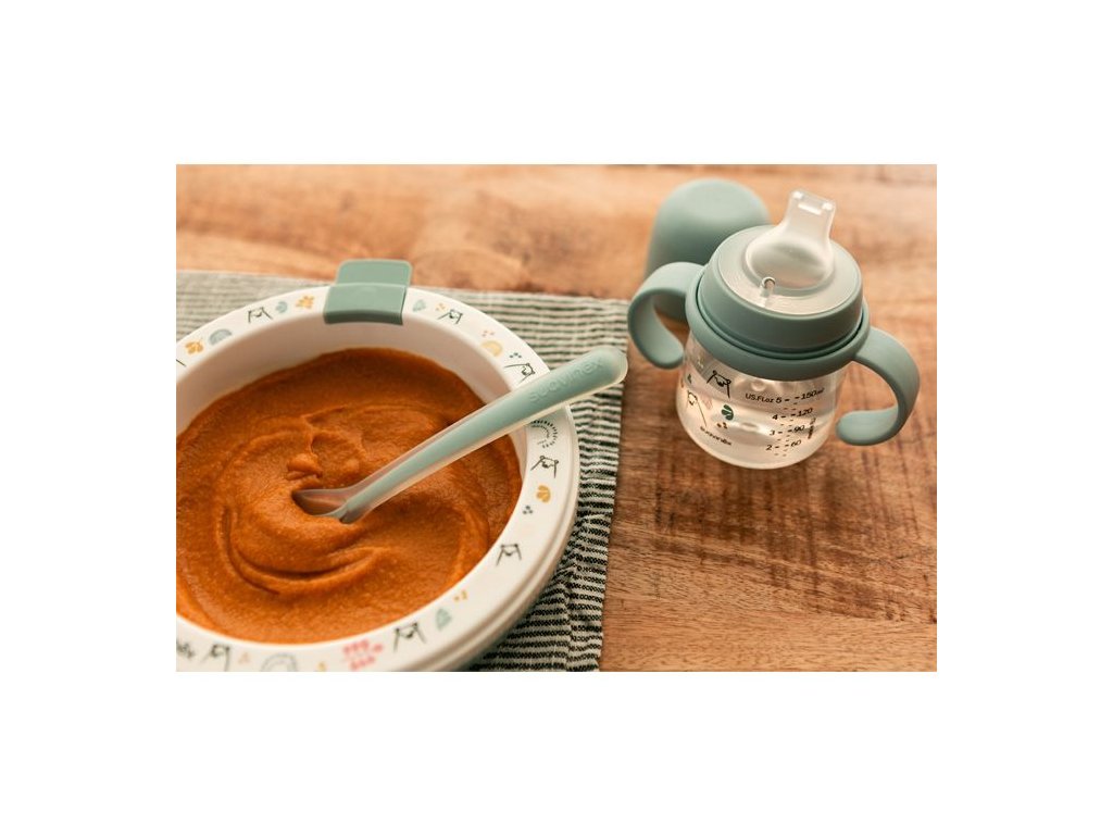 První láhev s oušky se speciální SX ProTM antikolikovou savičkou usnadňuje přechod z kojenecké láhve na pití z hrníčku či sklenice. Silikonové pítko je měkké a materiálově shodné se savičkami kojeneckých lahví a dudlíků SX ProTM . Proto ho Vaše děti přijmou rychleji než běžná tvrdá pítka.