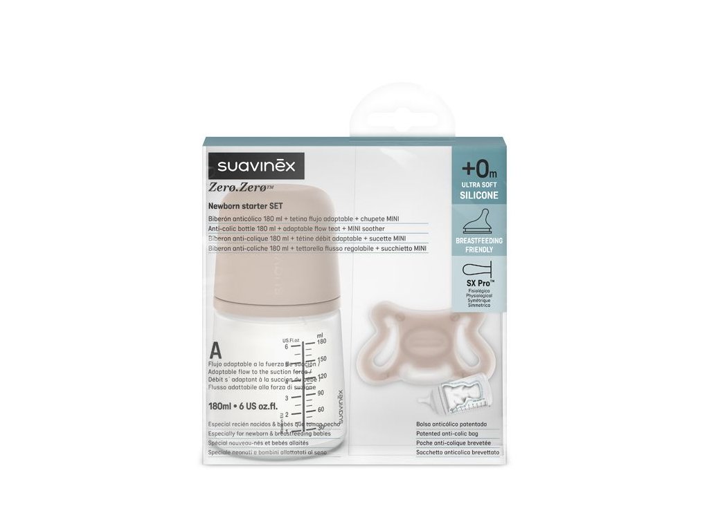 SUAVINEX | SADA ANTIKOLIKOVÁ Zerø.Zerø™ MEDIUM LÁHEV 180 ml A + dudlík Zerø.Zerø™ -2/ 2M