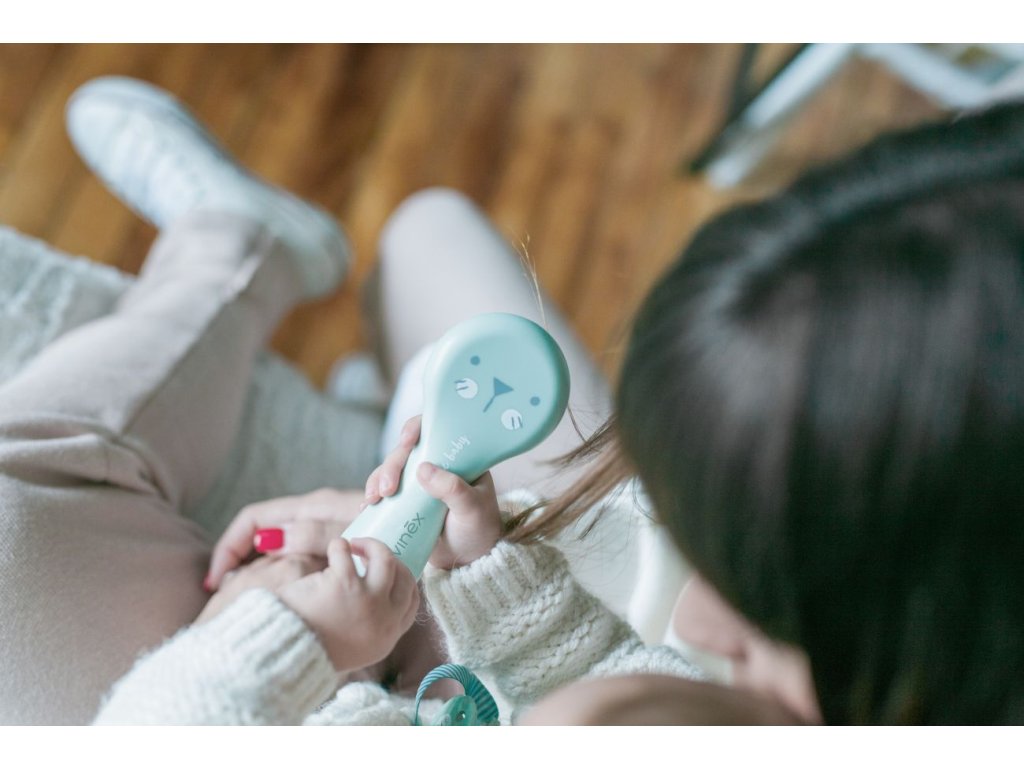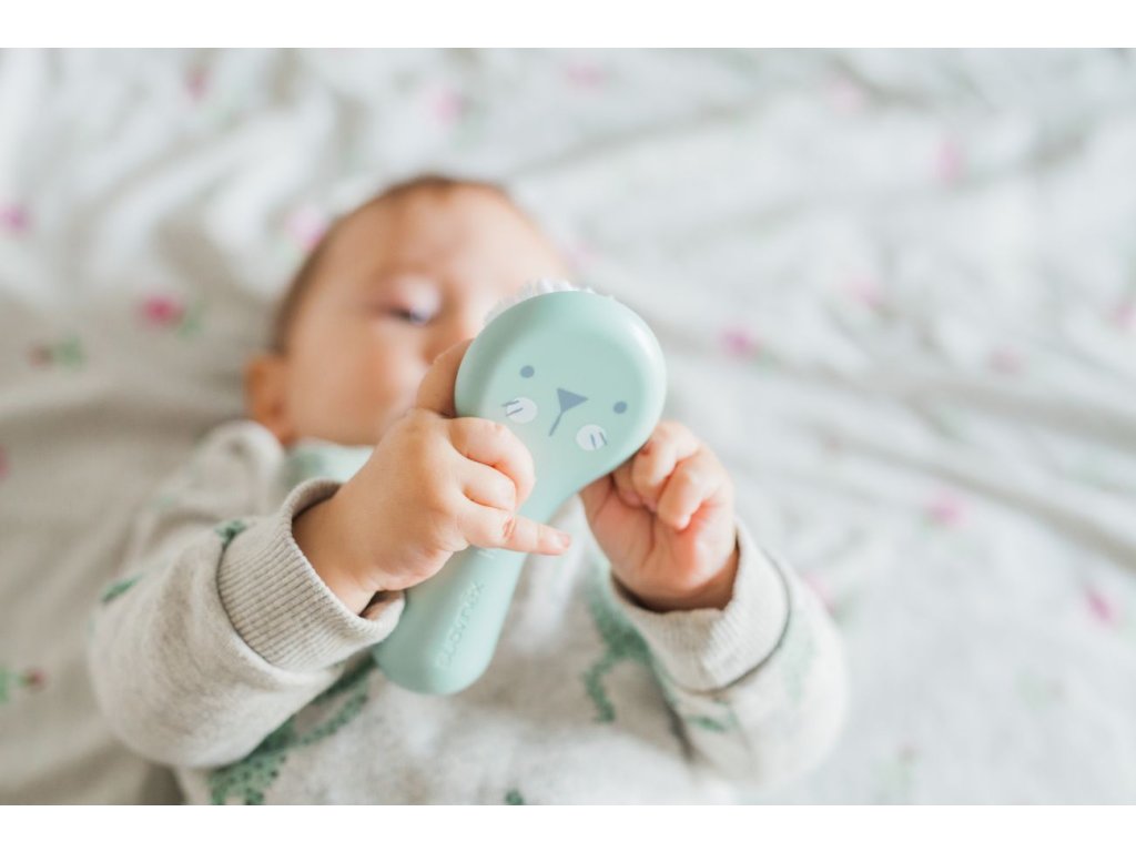 Set hřebenu a kartáčku je ideálním pomocníkem pro každodenní péči o vlásky děťátka. Dopřejte jemnou masáž i miminku, které má jen jemné chmýří. Kartáč i hřeben jsou bez ostrých a nebezpečných hran, které by mohly být dítěti nebezpečné. Zuby hřebínku mají zaoblené konce a vlákna kartáčku jsou měkoučké a pružné. Ideální pro jemnou dětskou pokožku i vlásky, vhodné pro miminka od narození.