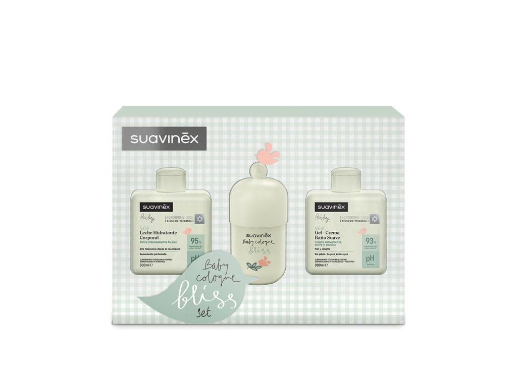 SUAVINEX | SET HYDRATAČNÍ EMULZE 300ML + KRÉMOVÝ MYCÍ GEL 300ML + KOLÍNSKÁ VODA BLISS 100ML