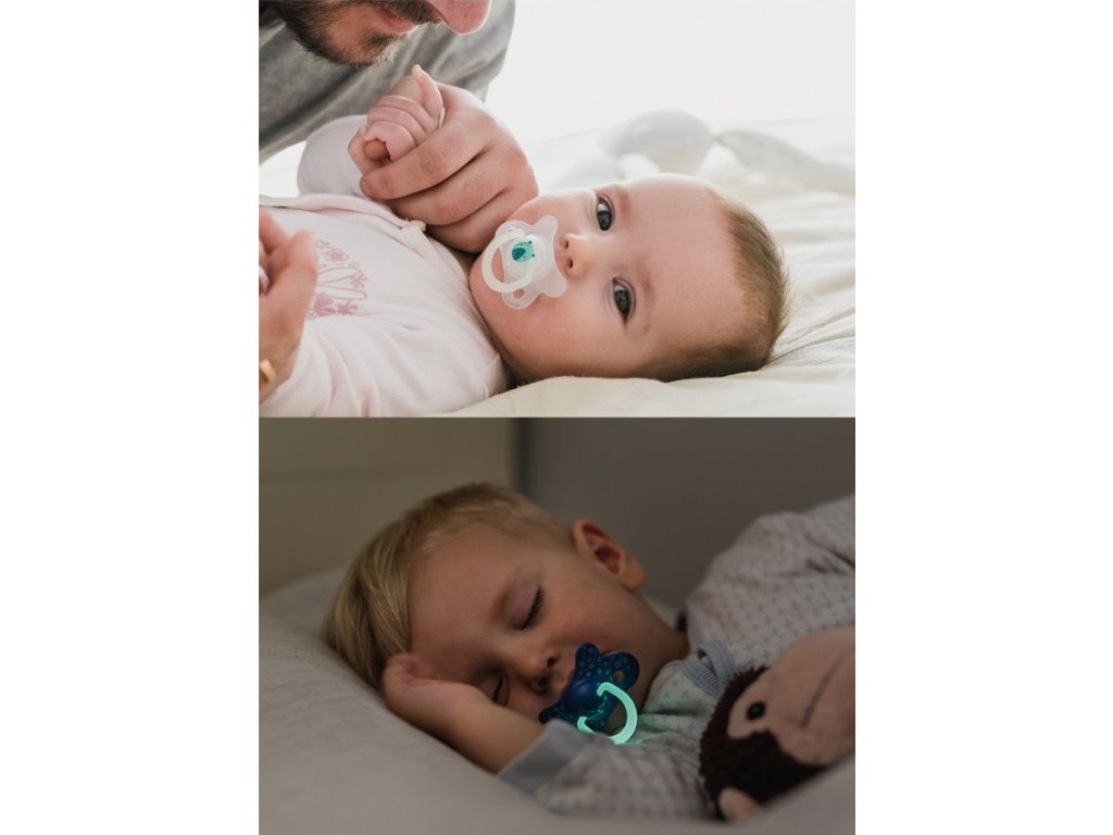 Tma vám již nikdy dudlík neukryje a vy nebudete muset marně hledat - dudlík řady Den&Noc má kroužek svítící ve tmě.