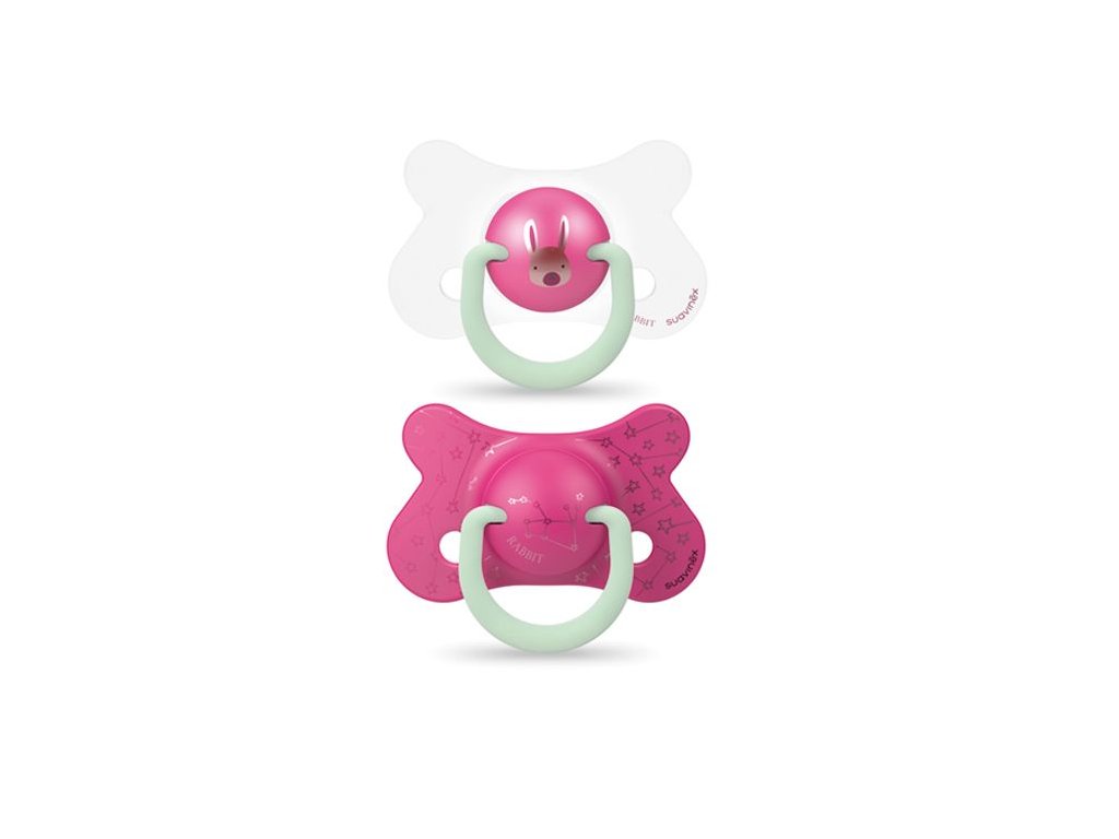 SUAVINEX | Šidítko DEN&NOC fyziologické silikon +18 m - 2 ks - růžový králík