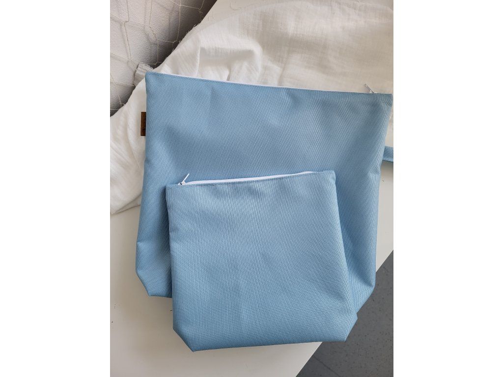 Sada obsahuje dva kusy - větší (cca 28x30 cm) může posloužit na plenky, náhradní oblečení nebo hračky. Navíc má jednoduché poutko, díky kterému budete mít volné ruce kdykoliv to bude třeba.