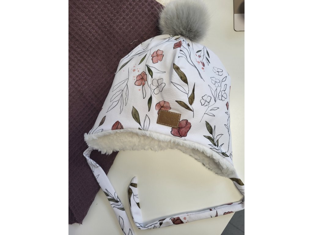 Měkoučká ušanka z teplákoviny s autorským vzorem Teddy a z příjemného beránka.