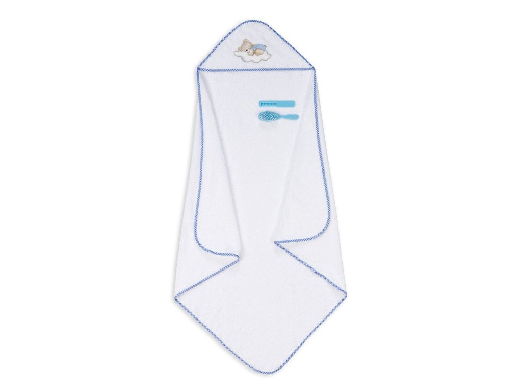 VÝPRODEJ - INTERBABY | Osuška froté MEDVÍDEK LOVE + hřeben - BÍLO/MODRÁ