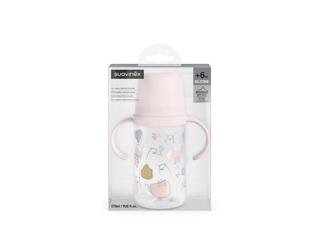 Výprodej - SUAVINEX | DRUHÁ láhev s oušky BEAR 270 ml - RŮŽOVÁ