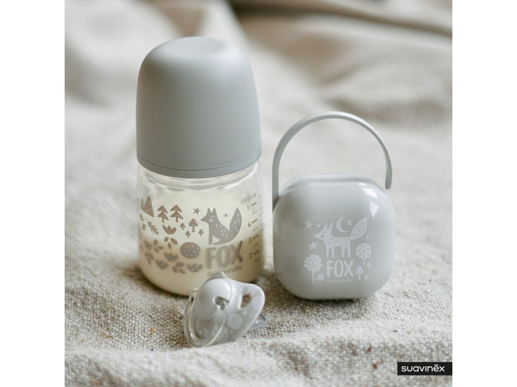 VÝPRODEJ - SUAVINEX | Kojenecká láhev 150 ml S FOX - STŘÍBRNÁ