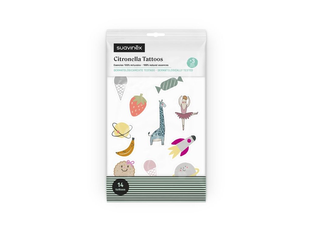 Zábava formou tetování chrání děti při jejich aktivitách. Složení tetovaček zahrnuje 100% přírodní esenci citronely, která se během používání uvolňuje a chrání pokožku.